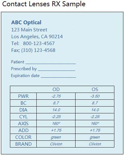 Understand your contact lens prescription with our easy guide. Most contact lens prescriptions will have a brand/type/manufacturer name so that it is possible to reorder your lenses provided the prescription is still valid. If you have a flexible spending account (fsa)or health savings account (hsa) why delay taking care of yourself and your vision? How to read your eyeglass prescription. Glasses prescription vs contact lens a glasses prescription is not the same as a contact lens prescription.